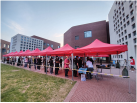 按照市疫情防控指挥部和市教育两委疫情防控指挥部工作要求,为全面落实《新型冠状病毒肺炎防控方案(第九版)》、《高等学校新冠肺炎疫情防控技术方案(第五版)》的要求,坚持落实核酸检测抽检和定期检测制度,根据我校疫情防控指挥部部署安排,后勤保障处组织我校师生员工(含外包服务人员)于返校第1日、第3日、第7日进行全员核酸检测,检测共计20000余人次。按照常态化核酸检测要求,返校第二周至第四周,按照每天每宿舍抽检学生人数不低于30%的比例组织核酸检测(每日检测3500余人次),同时组织学校全体教职员工(含外包服务人员)每周一、四进行2次核酸检测(每次检测达900余人次)。接下来,后勤保障处将继续从严从细从实做好常态化校园疫情防控工作,织密校园防疫网,保障全体师生身体健康与生命安全。